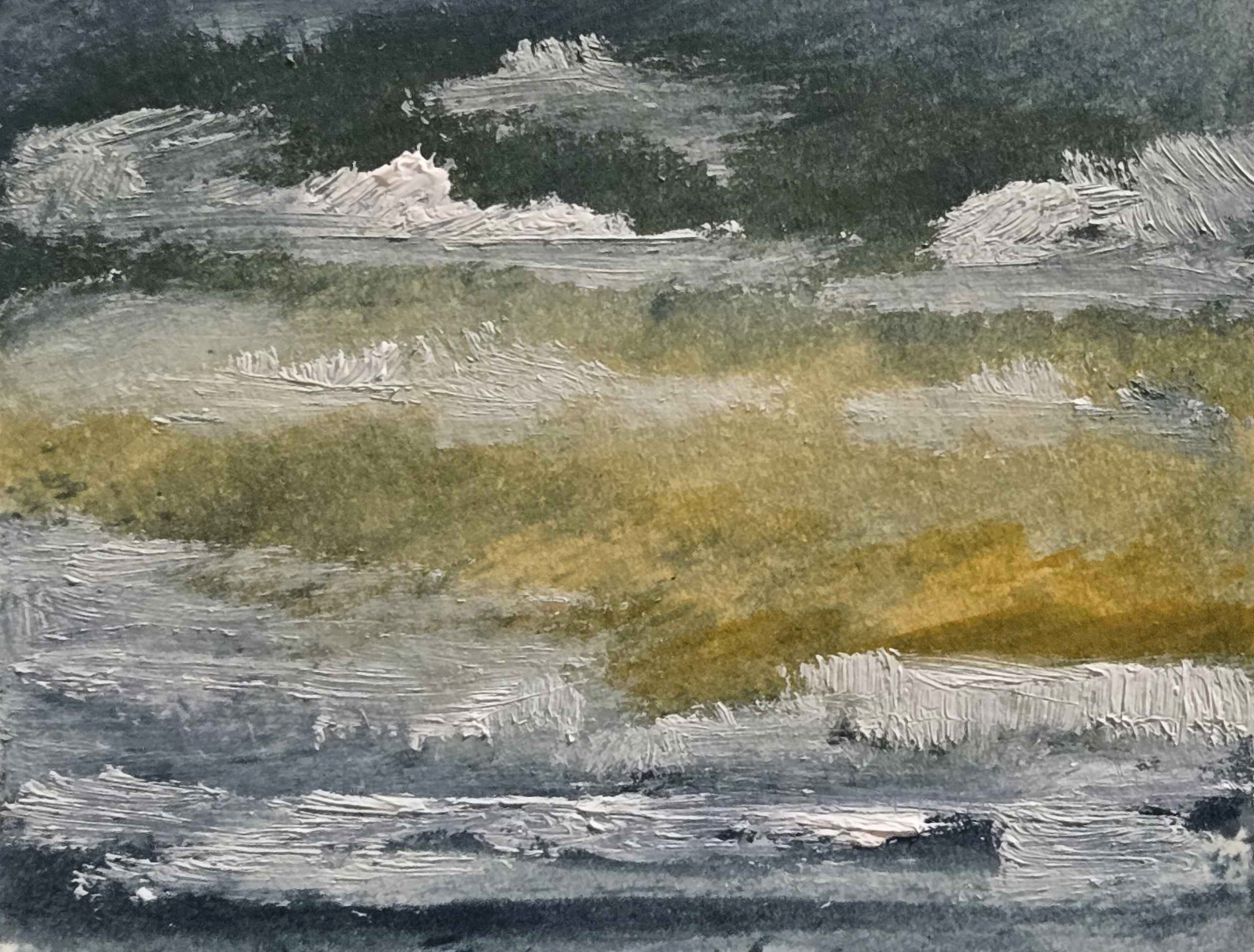 Oil on paper, 7 x 10.5cm. THis artwork is unframed, and will be shipped directly by the artist from their studio in Wales.