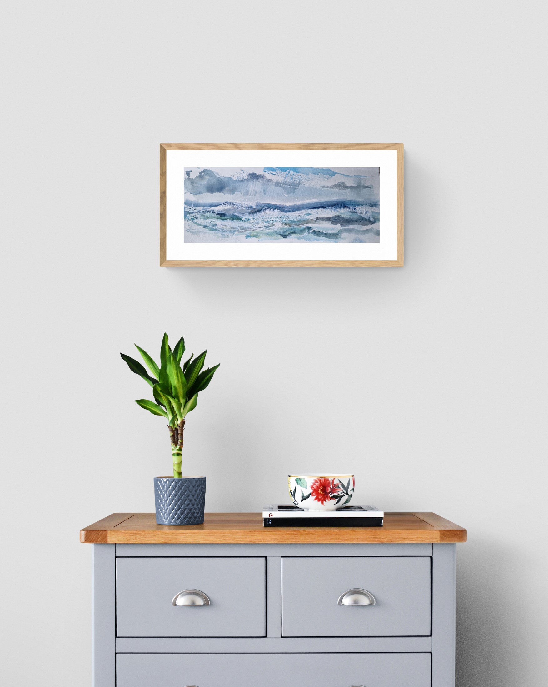 23 x 57 cm, Watercolour, ink and pastel. This artwork is unframed and will be shipped from the artist's studio in a cardboard tube. Shipping may be delayed due to the adventurous nature of the artist!